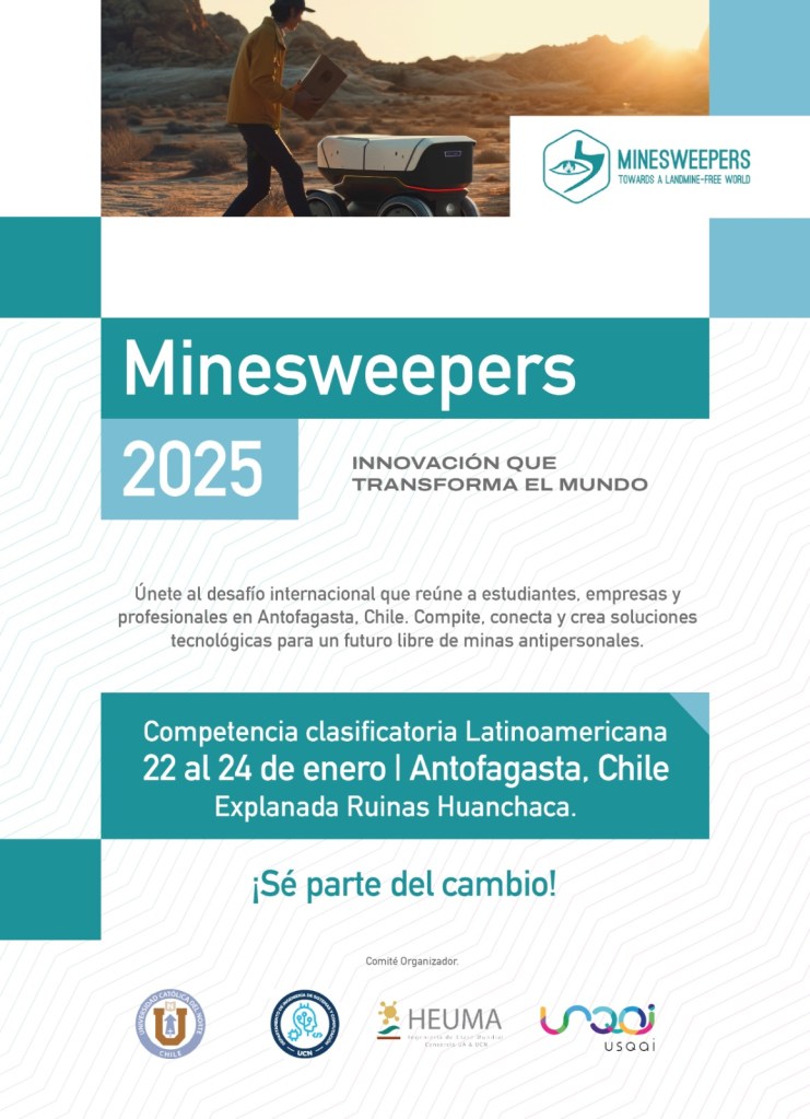 MinesWeepers Latinoamérica Competencia LatinoAmericana “Minesweepers” «Desafiando la tecnología para un mundo más seguro» Inscríbete Ahora! Bases Minesweepers 2025 Ediciones Anteriores del Congreso Video: Resumen MinesWeepers 2016 Latinoamérica Ediciones Actuales