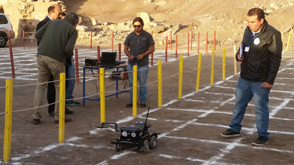 - Búsqueda de objetos metálicos de forma cúbica, colocados en la superficie y enterrados, mediante un vehículo terrestre/aéreo tele-operado y/o autónomo. Estos objetos emulan las minas terrestres antipersonal y las municiones sin detonar. El vehículo debe navegar en un entorno accidentado que simule un campo minado real.